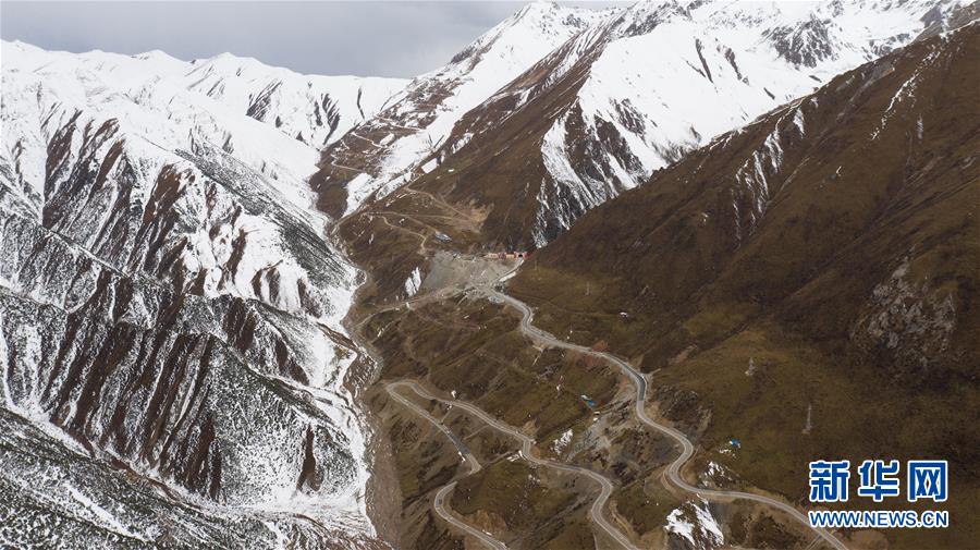 這是318國道剪子彎山段,大雪過后銀裝素裹(10月17日無人機拍攝)。新華社記者江宏景攝
