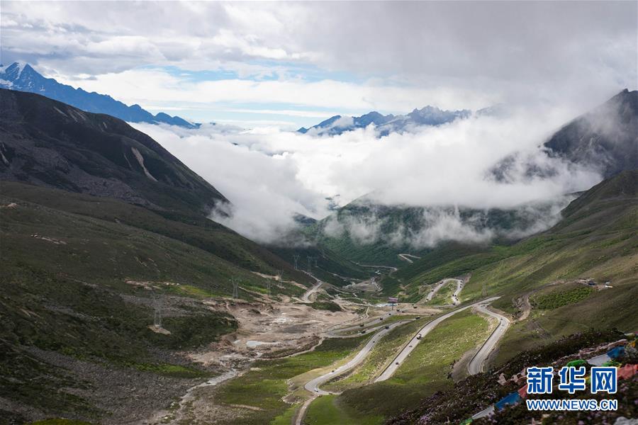 這是在川藏公路四川剪子彎山埡口附近拍攝的曲折回旋的川藏公路(6月26日攝)。