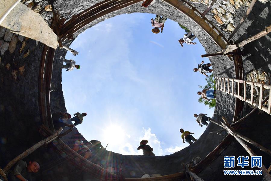 在廣西大化瑤族自治縣板升鄉(xiāng)弄勇村,群眾在修建家庭水柜(2017年9月2日攝)。新華社記者黃孝邦攝