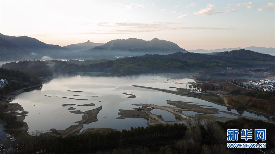 這是11月15日無人機拍攝的安徽黟縣奇墅湖晨景。新華社記者張笑宇攝