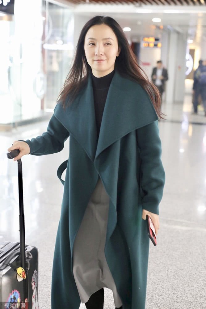 當(dāng)天,陶虹身穿一件深綠色的大衣,長發(fā)披肩笑容親切,內(nèi)搭一件黑色緊身衣,腳踩一雙黑色的毛絨拖鞋,居家范兒十足。