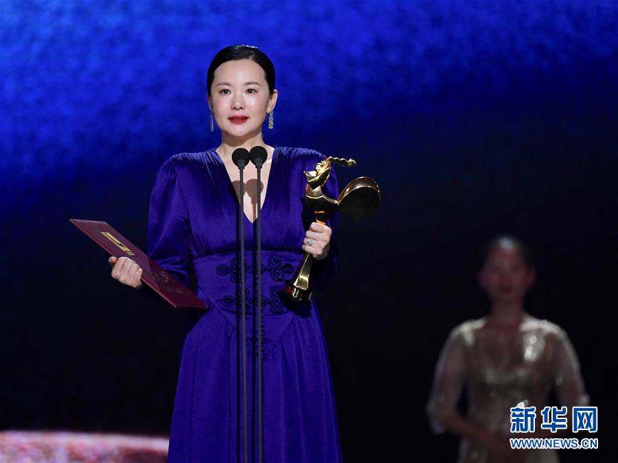 11月23日,電影《地久天長》主演詠梅獲得最佳女主角獎(jiǎng)。 當(dāng)日,第32屆中國電影金雞獎(jiǎng)?lì)C獎(jiǎng)典禮在福建廈門舉行。 新華社記者姜克紅攝