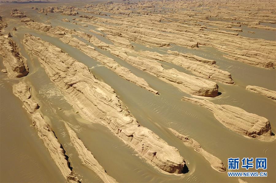 這是5月8日無人機拍攝的敦煌雅丹國家地質公園雨后景色。新華社記者范培珅攝
