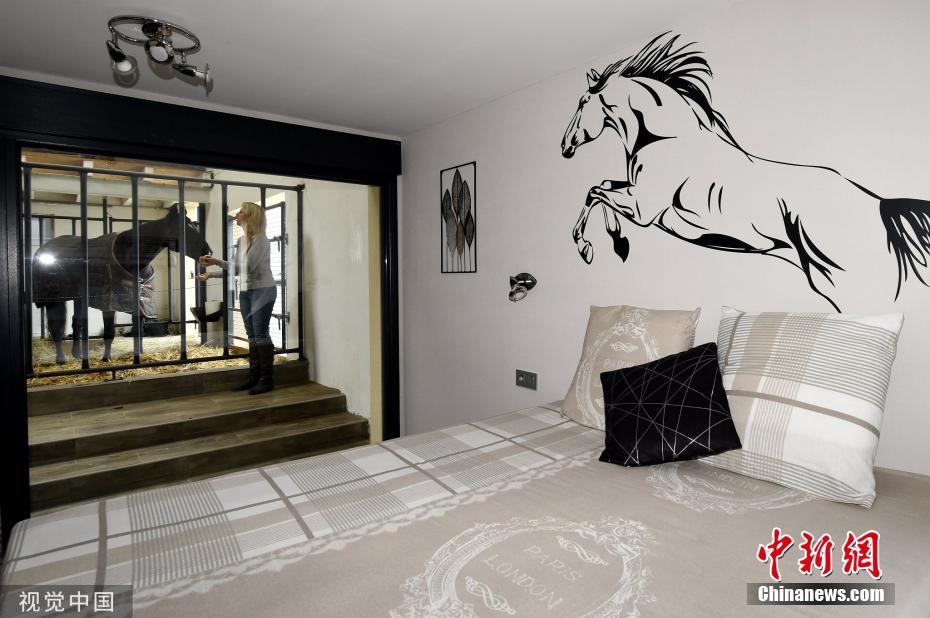 當地時間2019年11月25日,法國桑圖瓦地區(qū)弗賴斯內,一家特別的“酒店”開張,入住者可以透過玻璃清楚的看到馬廄里的馬,還可以跟馬親密接觸。圖片來源:視覺中國