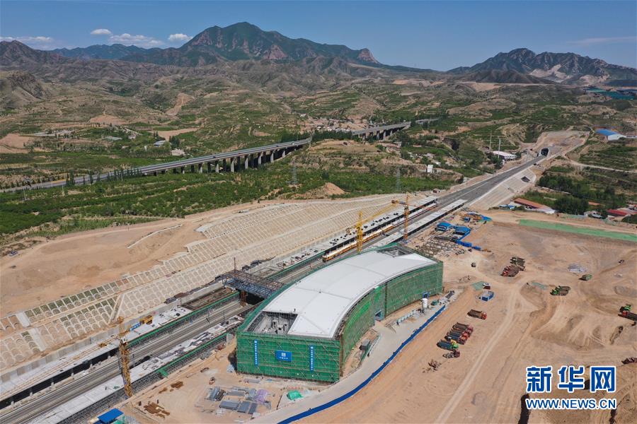 5月28日無人機(jī)拍攝的建設(shè)中的京張高鐵懷來站。新華社記者邢廣利攝
