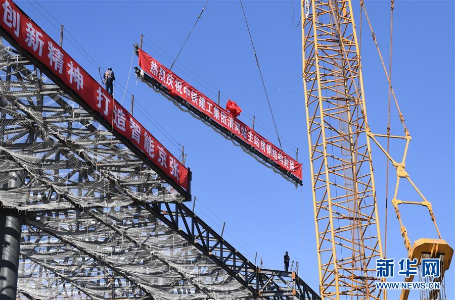 5月29日,工人在京張高鐵下花園北站施工。新華社記者邢廣利攝