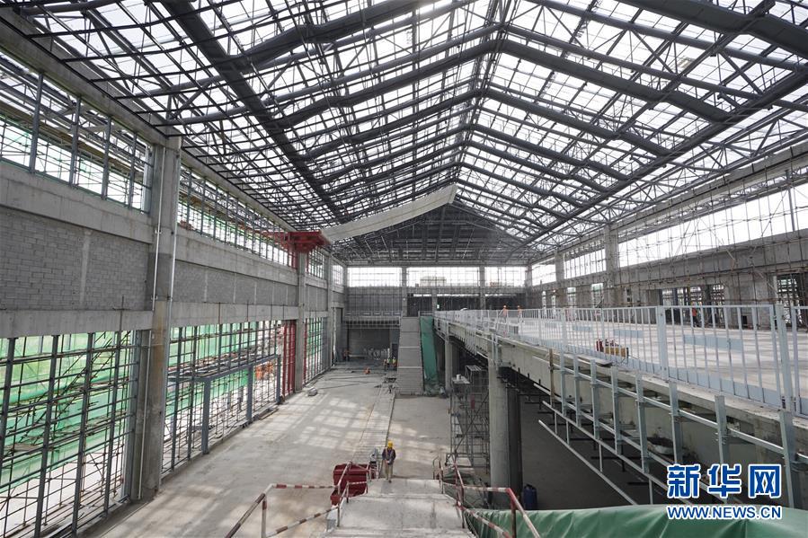建設(shè)中的宣化北站(5月30日無人機(jī)拍攝)。京張高鐵宣化北站位于河北省張家口市宣化區(qū)北盆兒窯村附近,京張高鐵線路北側(cè),目前該站已完成站房主體結(jié)構(gòu)、鋼結(jié)構(gòu)、金屬屋面、清水混凝土雨棚結(jié)構(gòu)等施工內(nèi)容,全面進(jìn)入裝飾裝修施工階段。新華社記者邢廣利攝
