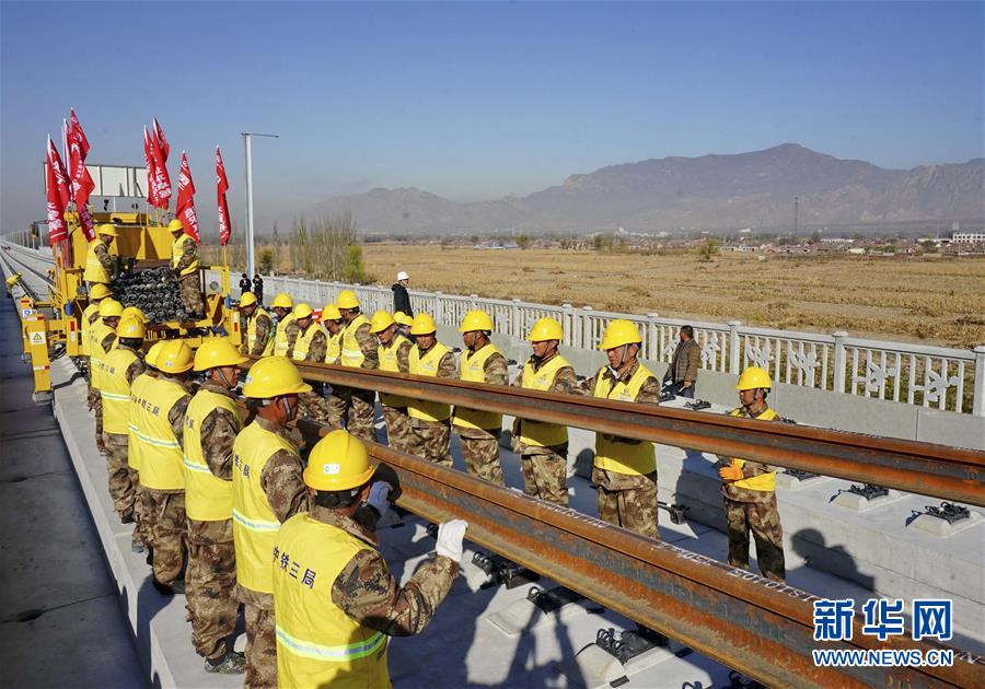 (2018年)11月1日,中鐵三局的工人在京張高鐵河北懷來段鋪軌現(xiàn)場(chǎng)工作(無人機(jī)拍攝)。當(dāng)日,由中鐵三局承建的京張高鐵全線鋪軌工程正式開始。京張高鐵是國(guó)家重點(diǎn)建設(shè)項(xiàng)目,是2022年北京冬奧會(huì)的重要交通保障線。京張高鐵全長(zhǎng)174公里,建成后,乘高鐵從北京到張家口的時(shí)間將縮短到50分鐘,對(duì)于助力奧運(yùn)、促進(jìn)京津冀一體化發(fā)展、連接西部都具有十分重要的戰(zhàn)略意義。