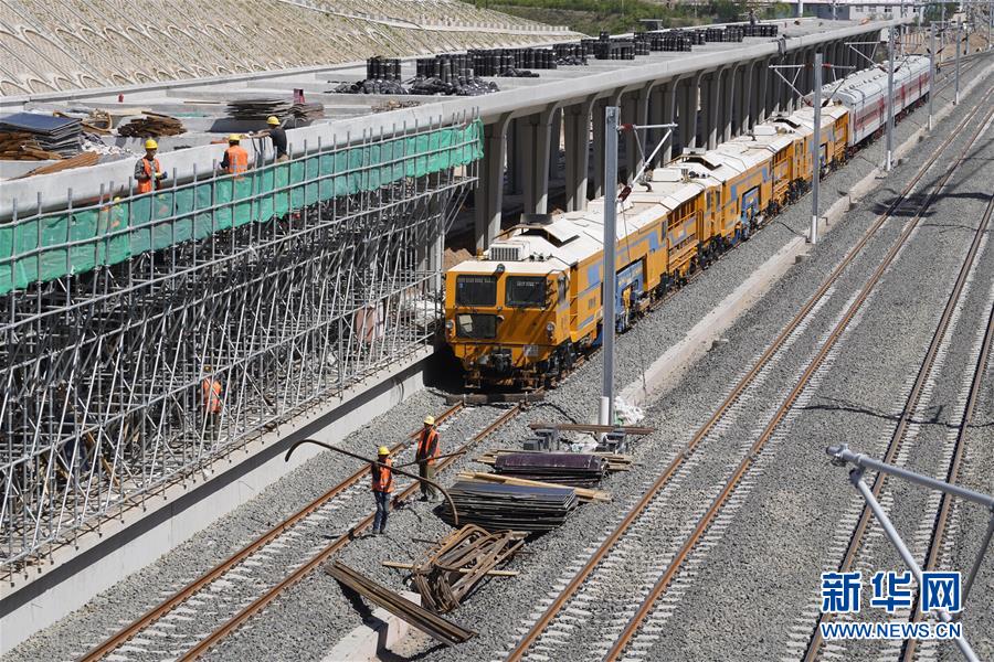 5月30日,工人在宣化北站施工。新華社記者邢廣利攝