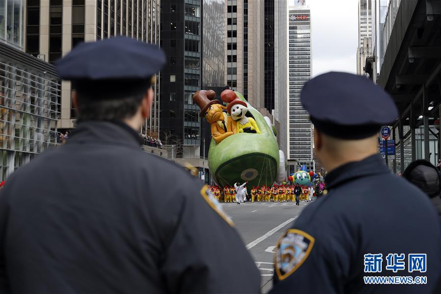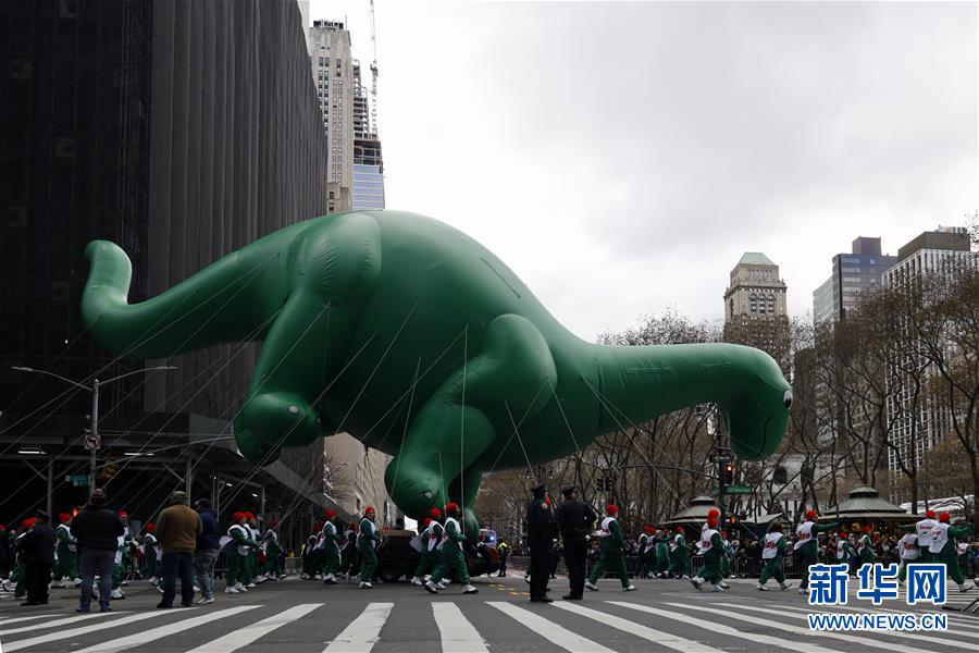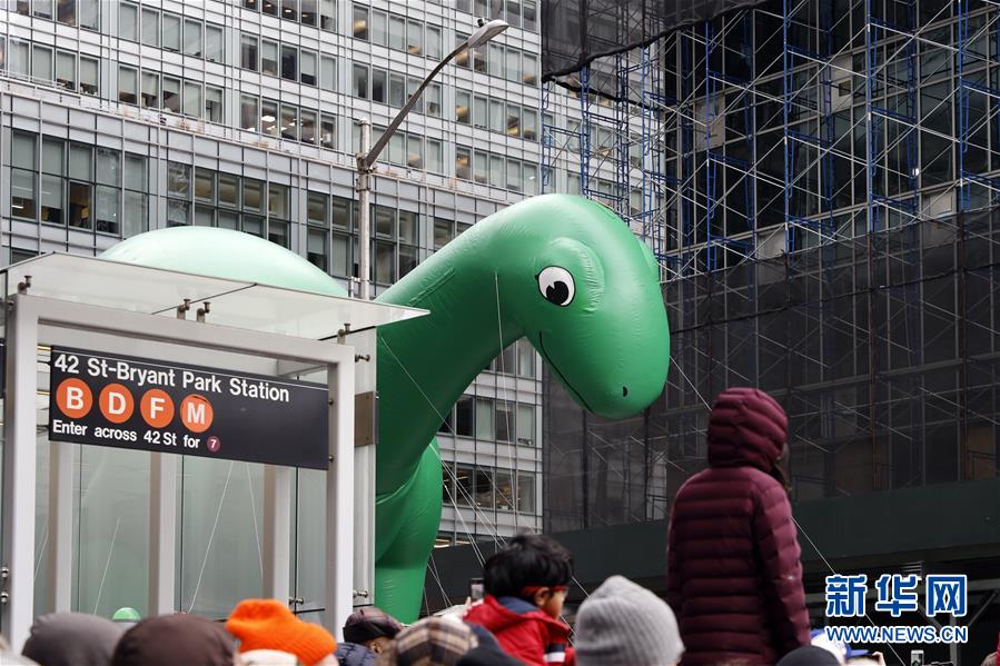 11月28日,在美國紐約舉行的感恩節(jié)大游行上,卡通氣球行進(jìn)在曼哈頓街頭。 新華社記者 李木子 攝