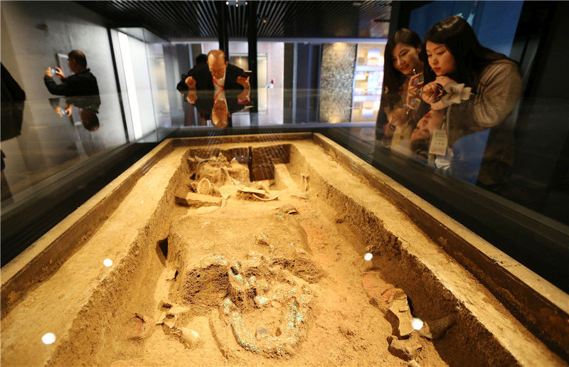 2019年10月19日,河南洛陽,二里頭夏都遺址博物館。觀眾在觀看當年的考古現(xiàn)場。