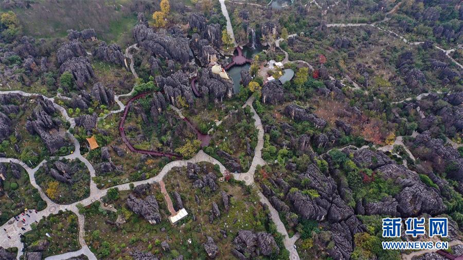 11月28日,空中俯瞰石林景區(qū)(無(wú)人機(jī)拍攝)。新華社記者江文耀攝