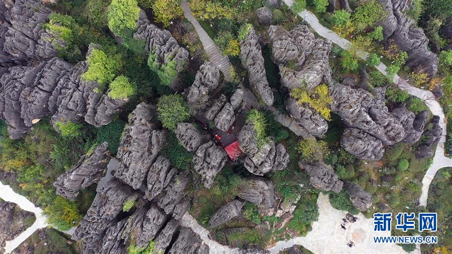 這是云南石林彝族自治縣黑石箐石林景觀(11月28日無人機拍攝)。新華社記者張愛林攝