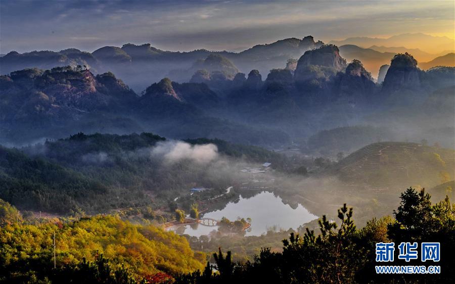 這是武夷山齊云峰晨曦(11月17日攝)。新華社記者張國俊攝