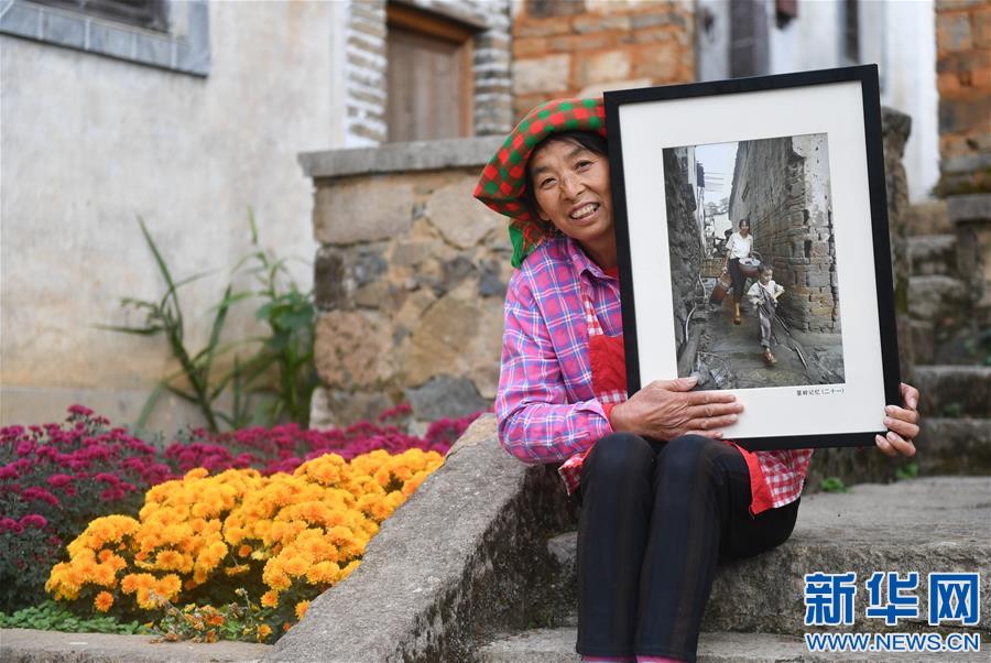 篁嶺村村民曹細香拿著2010年自己的老照片在家門前留影(11月7日攝)。新華社記者胡晨歡攝