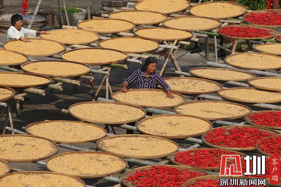2019年9月9日,安徽黃山,呈坎古村村民在曬場上晾曬農(nóng)作物。