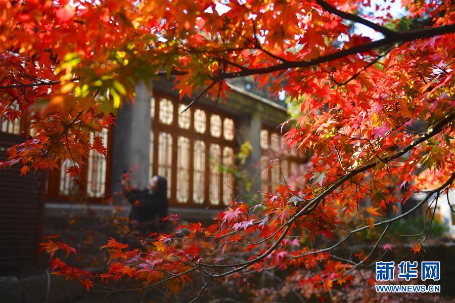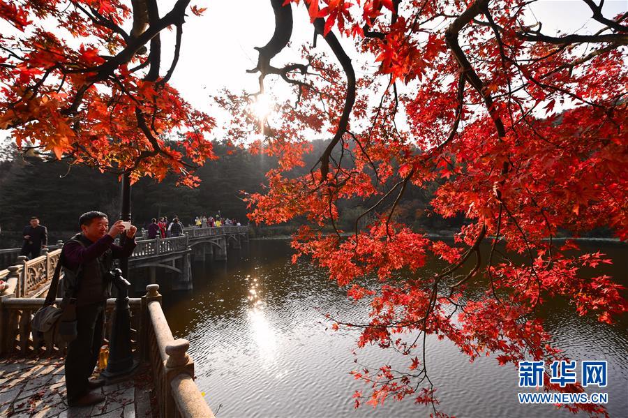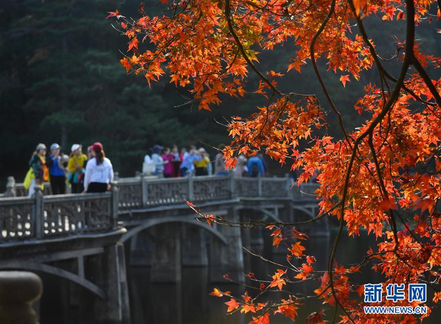 11月17日,游客在廬山如琴湖邊游玩。初冬時(shí)節(jié),江西廬山風(fēng)景區(qū)層林盡染,火紅的楓葉吸引眾多游客前來(lái)參觀,令人流連忘返。新華社記者胡晨歡攝