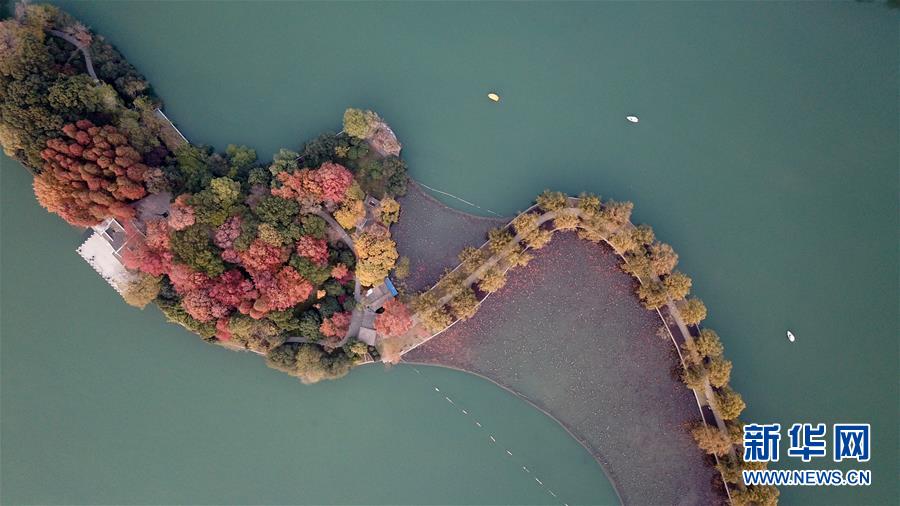 初冬時(shí)節(jié),位于湖南省長(zhǎng)沙市開福區(qū)的湖南烈士公園年嘉湖畔暖陽(yáng)照耀,色彩繽紛的樹葉與年嘉湖碧水構(gòu)成一幅美麗的冬日畫卷。