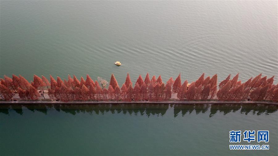 12月10日,小船在湖南烈士公園年嘉湖湖面行駛(無(wú)人機(jī)拍攝)。新華社記者陳澤國(guó)攝