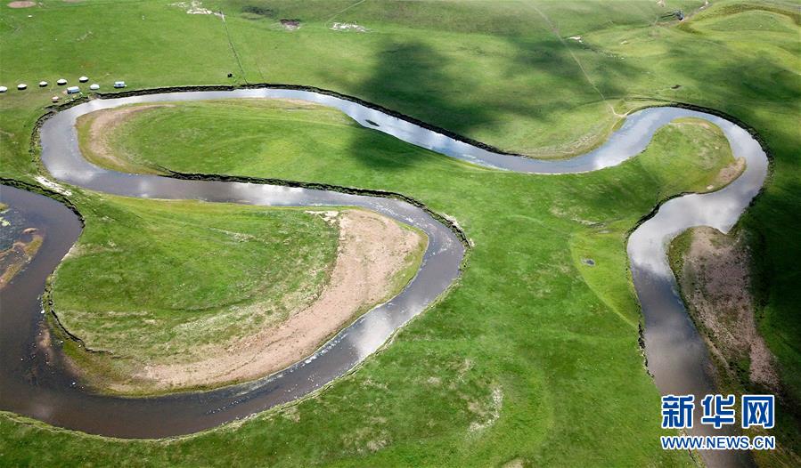 8月25日無人機拍攝的內蒙古呼倫貝爾市陳巴爾虎旗境內的莫日格勒河局部。新華社記者陳建力攝