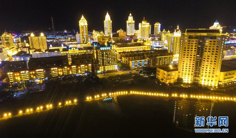 8月28日無(wú)人機(jī)拍攝的滿(mǎn)洲里市中心夜景。滿(mǎn)洲里市位于呼倫貝爾大草原腹地。新華社記者彭源攝