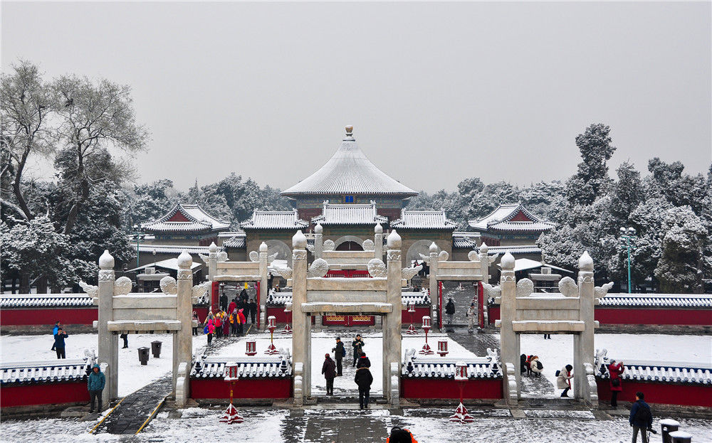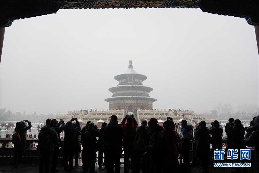 2019年11月30日,北京,初雪過(guò)后,天壇公園銀裝素裹,白雪古建相互映襯,景色迷人。天壇公園里觀(guān)雪賞景的市民絡(luò)繹不絕。喬?。垐D像/視覺(jué)中國(guó)