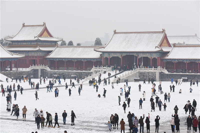 初雪后故宮銀裝素裹游客排隊(duì)打卡