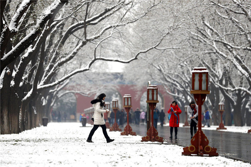 2019年11月30日,民眾在北京天壇公園內(nèi)賞雪。29日,北京迎來(lái)2019年冬季初雪。富田(攝影部)/中新社/視覺(jué)中國(guó)