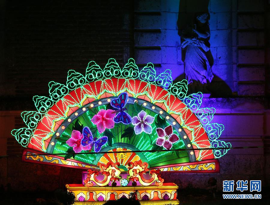 12月15日,在法國(guó)謝爾河畔塞勒市的塞納古堡,中國(guó)彩燈與城堡雕塑相得益彰。 新華社記者 高靜 攝