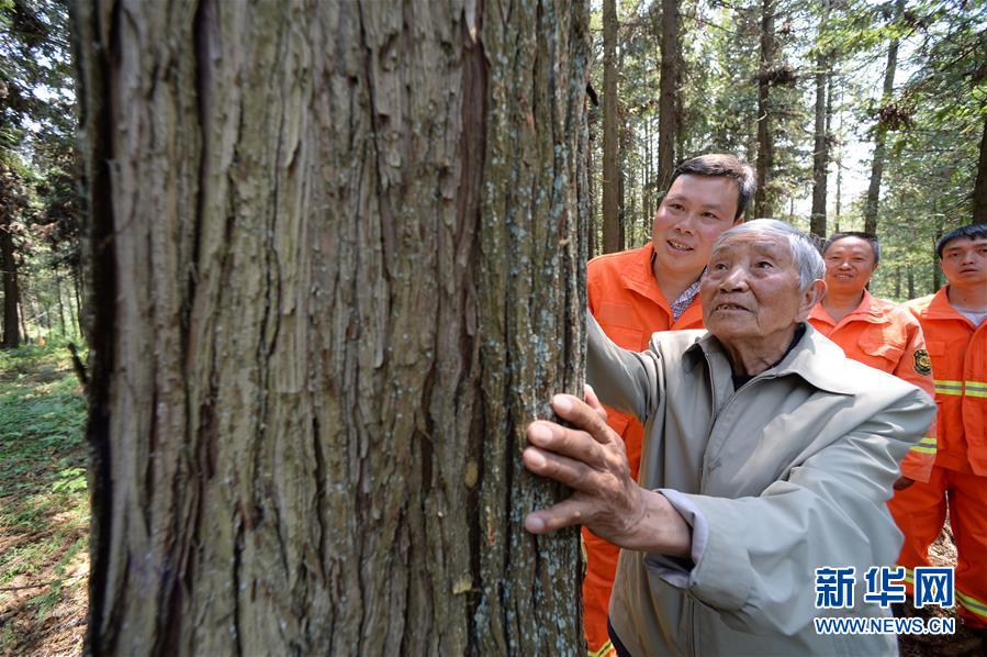4月27日,在貴州省畢節(jié)市赫章縣平山國有林場(chǎng),李代關(guān)老人(前)在查看當(dāng)年和同事種的杉樹。今年88歲的李代關(guān)是貴州省畢節(jié)市赫章縣平山國有林場(chǎng)的一名退休職工,他1958年參加工作,成為一名林業(yè)工人,把畢生奉獻(xiàn)給了林業(yè)事業(yè)。在李代關(guān)的感召下,他的兒子和孫子都成為了護(hù)林員。經(jīng)過幾代林業(yè)工人的努力,截至2018年底,赫章縣平山鎮(zhèn)的森林覆蓋率已達(dá)66.7%。新華社記者楊楹攝