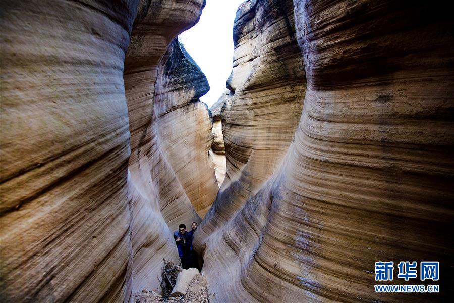 12月17日,游人在志丹縣雙河鎮(zhèn)毛項(xiàng)峽谷內(nèi)游覽。毛項(xiàng)峽谷位于陜西省延安市志丹縣雙河鎮(zhèn)毛項(xiàng)村,峽谷全長(zhǎng)12公里,分為9段,曲折綿延,谷內(nèi)石壁凹凸不平,其中最窄處只能容一人側(cè)身通過,堪稱黃土高原上的自然奇觀。新華社記者陶明攝