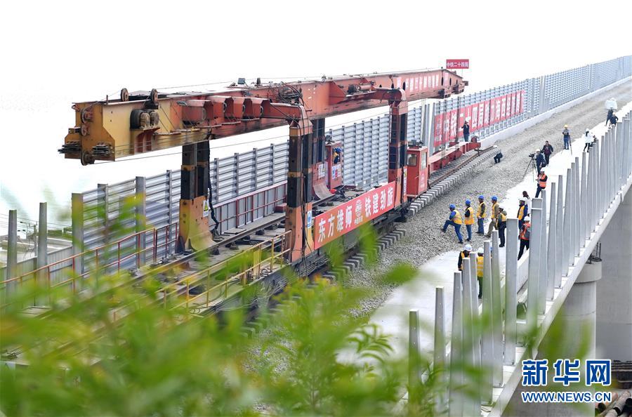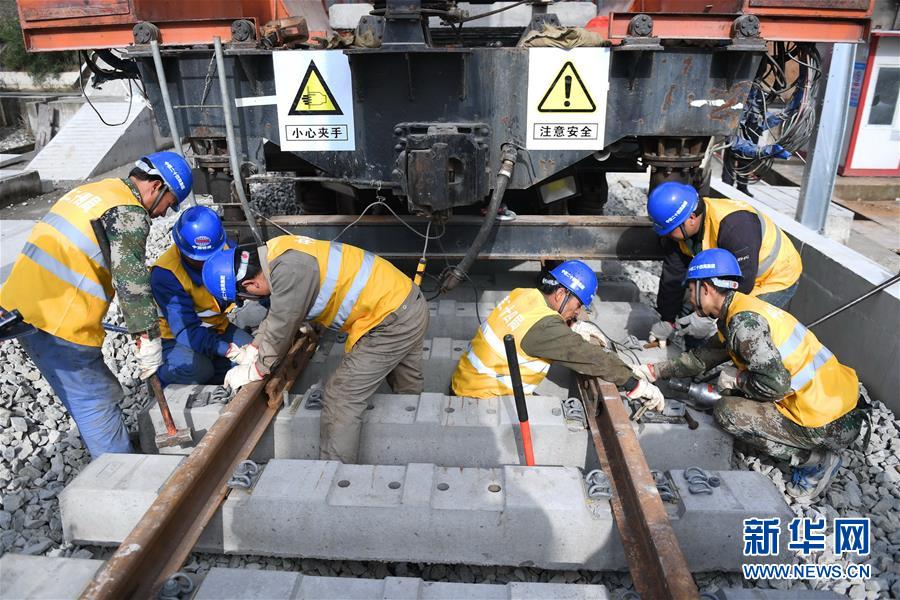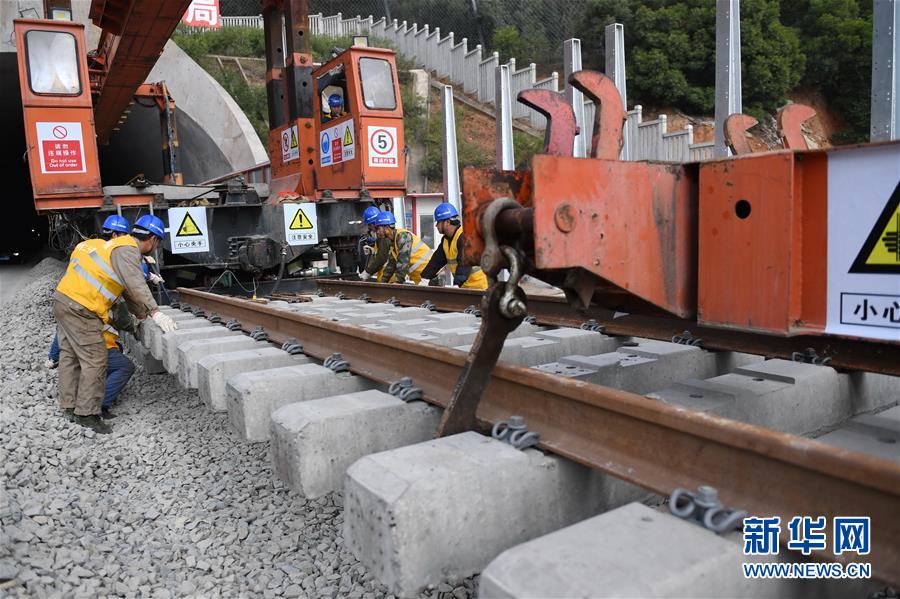 12月22日,中鐵二十四局工作人員在平潭海峽公鐵大橋鋪軌施工現(xiàn)場進行鋪軌作業(yè)。當(dāng)日,總長為16.34公里的福平鐵路平潭海峽公鐵大橋鋪軌正式啟動。平潭海峽公鐵大橋是福州至平潭鐵路控制性工程,上層設(shè)計為時速100公里的六車道高速公路,下層為設(shè)計時速200公里的高鐵,大橋計劃2020年正式通車。新華社記者林善傳攝