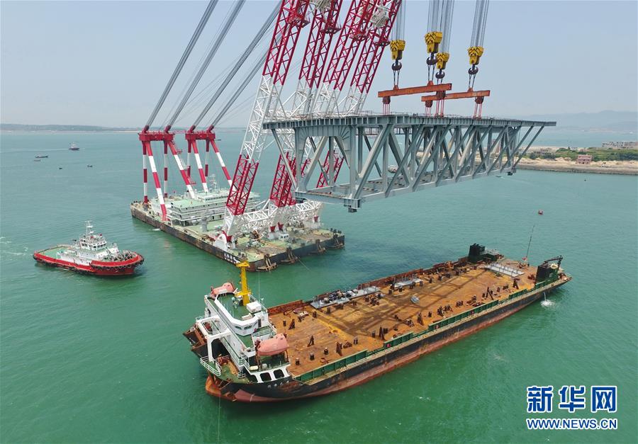 9月21日,平潭海峽公鐵大橋鼓嶼門航道橋的鋼桁梁在吊裝中(無人機拍攝)。9月25日上午,隨著一段長17米、重473噸的鋼桁梁被精確固定到位,總長16.34公里的平潭海峽公鐵大橋合龍貫通。平潭海峽公鐵大橋是福州至平潭鐵路控制性工程,也是“十三五”規(guī)劃中北京至臺灣高鐵的先期工程。大橋起于福州市長樂區(qū),“踏”過四座小島后抵達中國第五大島平潭,上層設(shè)計為時速100公里的六車道高速公路,下層為設(shè)計時速200公里的高鐵。據(jù)福建福平鐵路公司介紹,大橋計劃2020年正式通車。在六年建設(shè)過程中,平潭海峽公鐵大橋所應(yīng)用研發(fā)的多項技術(shù)、裝備創(chuàng)下國內(nèi)外紀錄。新華社記者林善傳攝