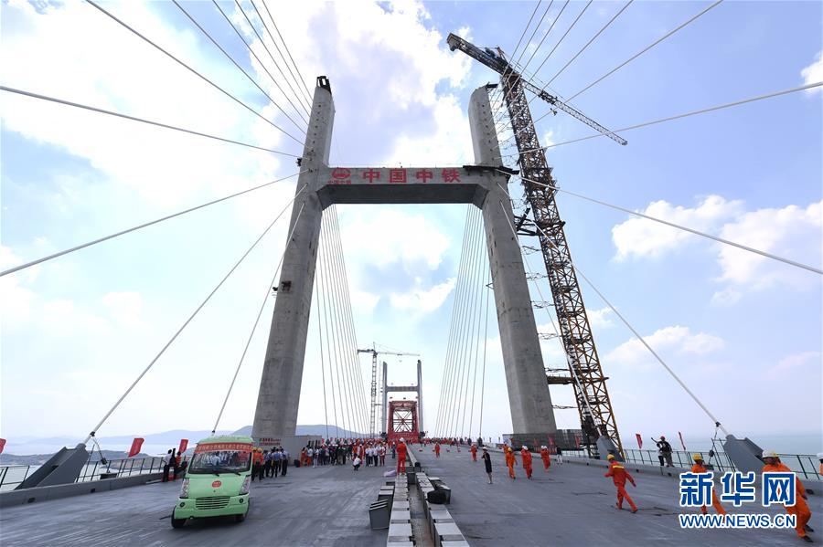6月5日,福平鐵路平潭海峽公鐵兩用大橋元洪航道橋主橋正式合龍。新華社記者林善傳攝
