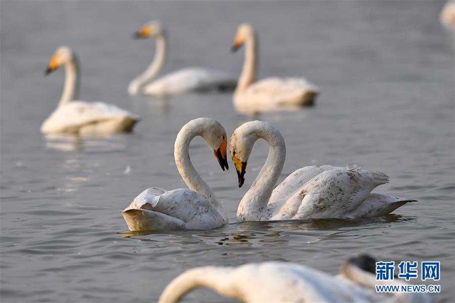 12月13日,白天鵝在山西平陸黃河濕地棲息。 連日來,眾多白天鵝飛臨山西平陸黃河濕地越冬。 占地6000多公頃的山西平陸黃河濕地位于山西、河南兩省交界處,這里氣候溫和,采食豐富,非常適宜白天鵝越冬。每年秋末冬初,白天鵝都會(huì)從遙遠(yuǎn)的西伯利亞來到這里棲息越冬。 新華社記者 詹彥 攝