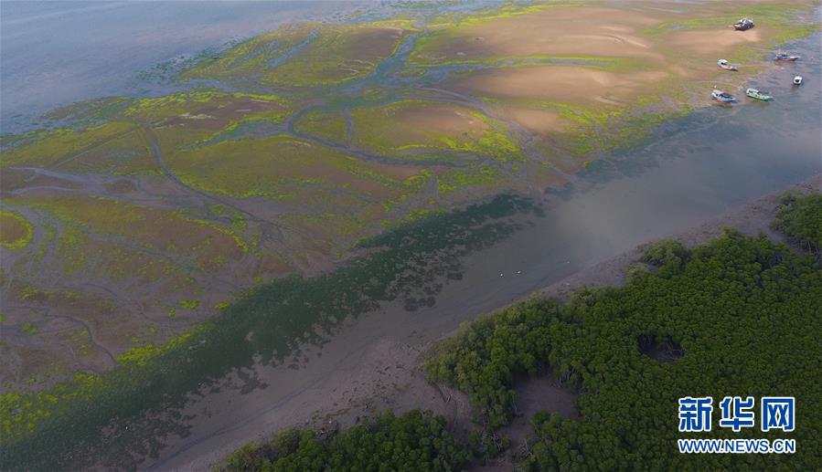 海南儋州新英灣紅樹(shù)林市級(jí)自然保護(hù)區(qū)的紅樹(shù)林和灘涂(12月10日無(wú)人機(jī)拍攝)。新華社記者楊冠宇攝