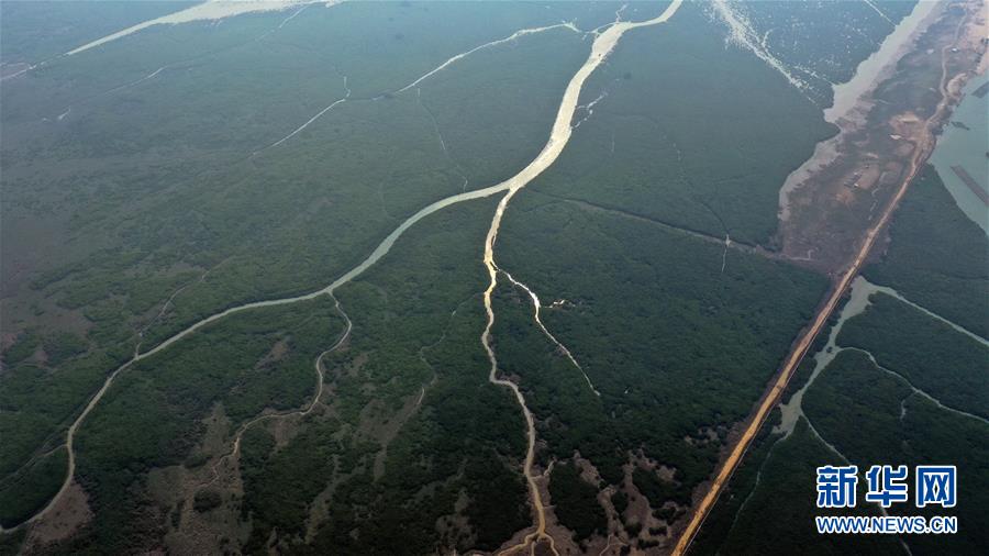 12月21日無人機拍攝的廣西合浦縣黨江鎮(zhèn)更螺圍出??谝痪?。冬日,廣西廉州灣海域風(fēng)光別致。新華社記者張愛林?jǐn)z