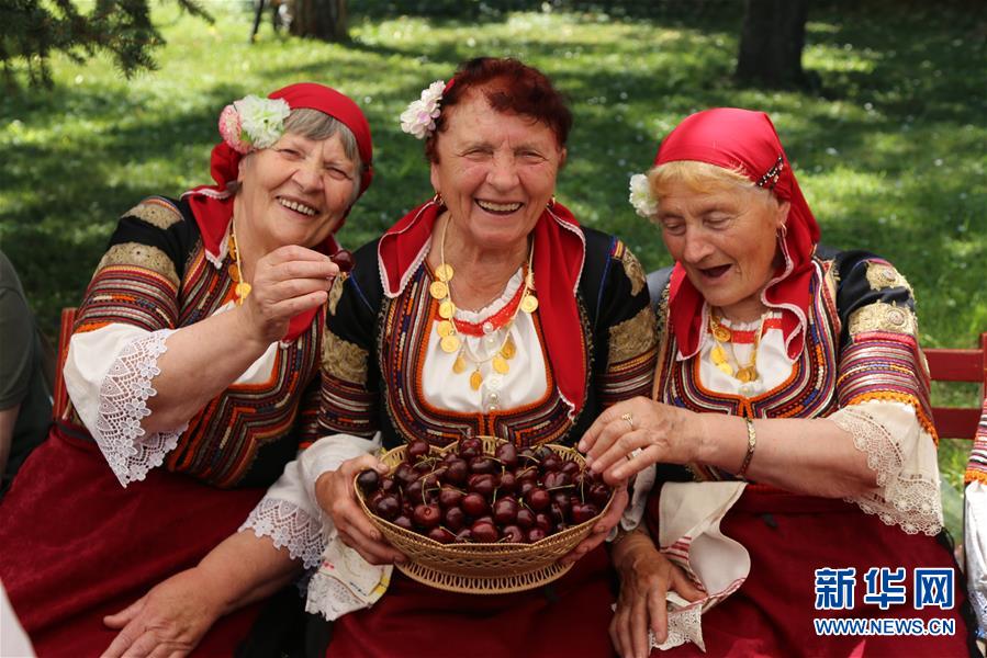 2019年6月22日,在保加利亞丘斯滕迪爾的櫻桃節(jié)上,果農(nóng)向游人展示櫻桃。丘斯滕迪爾位于保加利亞西部,距首都索非亞約100公里,是保加利亞櫻桃主產(chǎn)地之一,當?shù)禺a(chǎn)的櫻桃以顆粒飽滿、甜度高、品種多且口感好而聞名。 新華社記者 戰(zhàn)小漪 攝