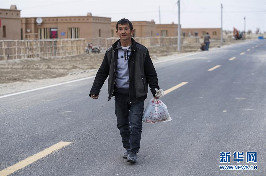 依明在新疆于田縣達(dá)里雅布依小鎮(zhèn)易地扶貧安置點(diǎn)參觀(3月19日攝)。新華社記者胡虎虎攝