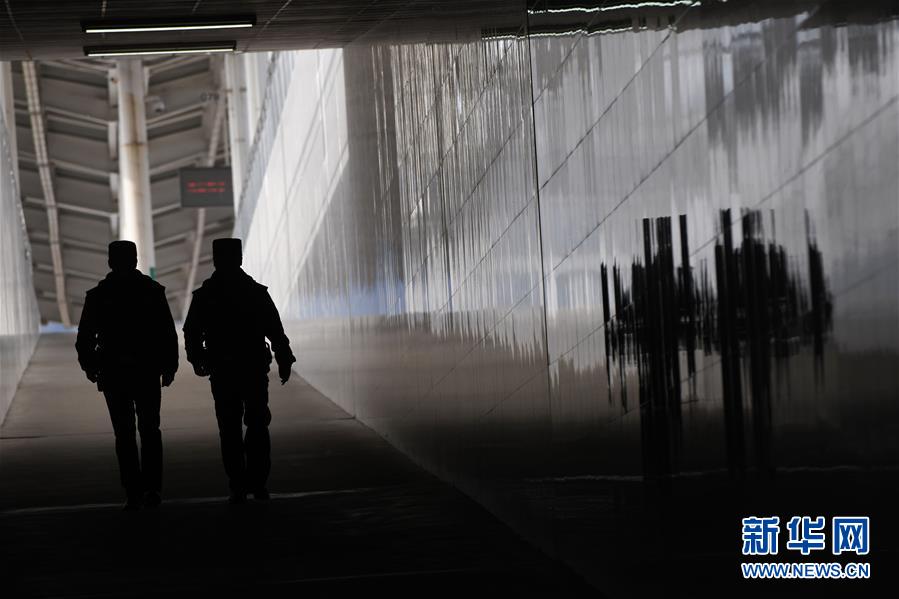 金寨火車站派出所民警鄧成成(右)與王晨旭在站內(nèi)執(zhí)勤(12月19日攝)。新華社記者張端攝
