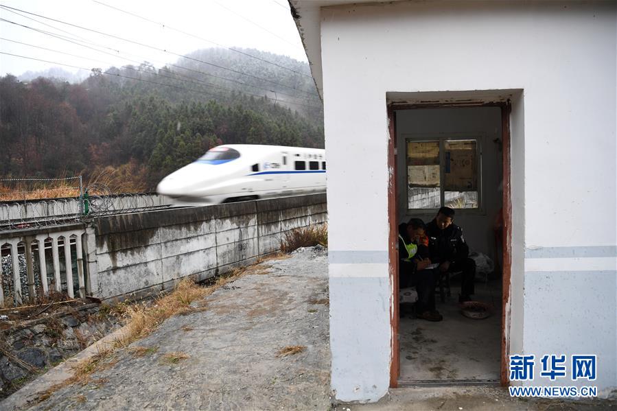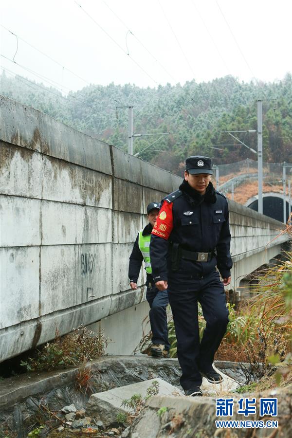 金寨火車站派出所民警張嗣一在站臺接車(12月19日攝)。安徽合肥鐵路公安處金寨火車站派出所位于大別山腹地。在這里,除了所領(lǐng)導(dǎo)外,青年民警平均年齡不到29歲。他們遠(yuǎn)離家鄉(xiāng),扎根大山深處的小站派出所,戰(zhàn)斗在守護(hù)客運(yùn)平安的第一線。新華社記者張端攝