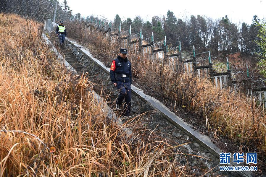 12月18日,常曉龍(前)和輔警在巡線。新華社記者劉軍喜攝