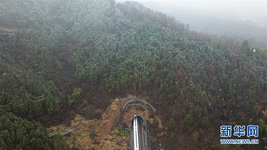 12月18日,一列列車經(jīng)過常曉龍管轄的鐵路線路(無人機拍攝)。新華社記者張端攝