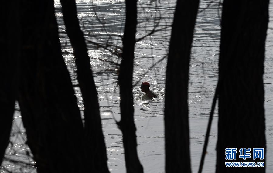 12月20日,83歲的冬泳愛(ài)好者周漢英在黃河冬泳。新華社記者陶希夷攝