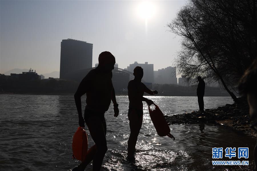 12月21日,冬泳愛好者游完上岸。新華社記者陳斌攝