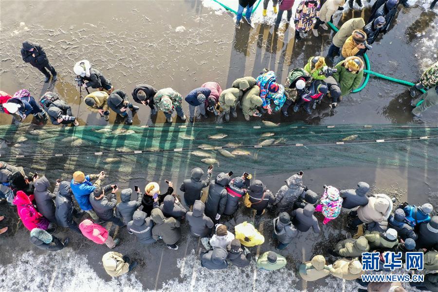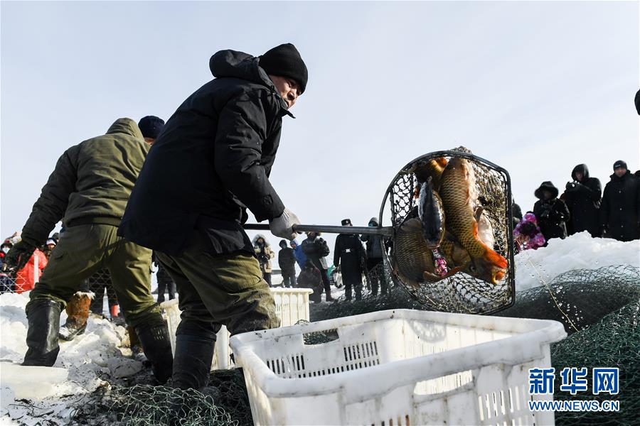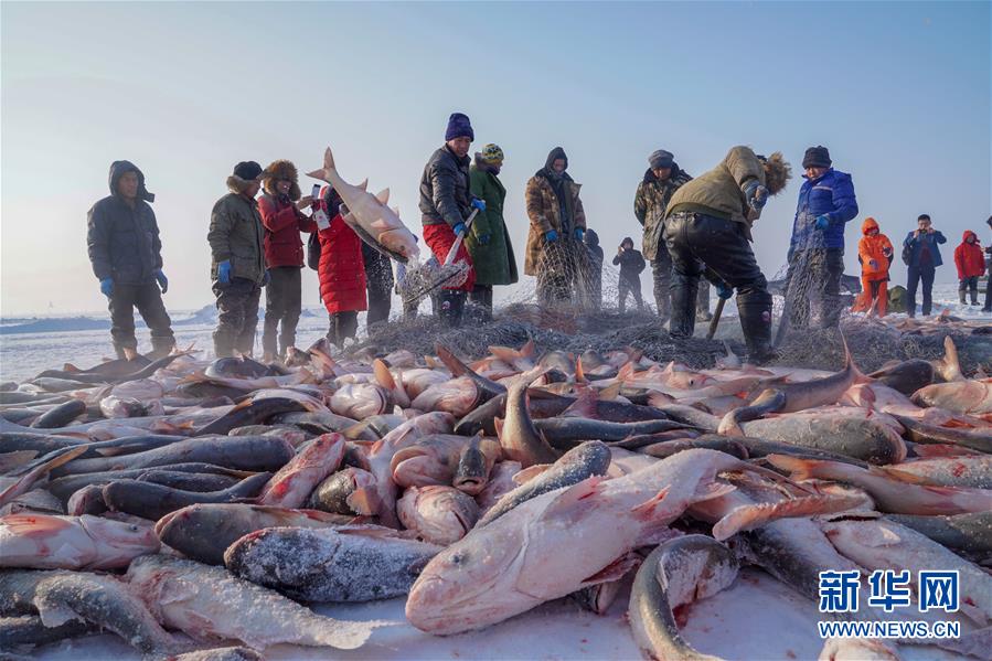 2018年12月26日,吉林松原,查干湖迎來了“紅網(wǎng)”,單網(wǎng)捕撈約30萬斤。