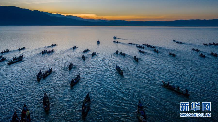 12月25日,漁船駛?cè)胄窃坪o人機(jī)拍攝)。當(dāng)日,位于云南省玉溪市江川區(qū)的星云湖迎來一年一度的開湖捕魚季,600余艘漁船駛?cè)胄窃坪稉?。星云湖是云南省九大高原湖泊之一,本次開湖捕魚時間將從2019年12月25日持續(xù)至2020年1月23日。新華社記者胡超攝