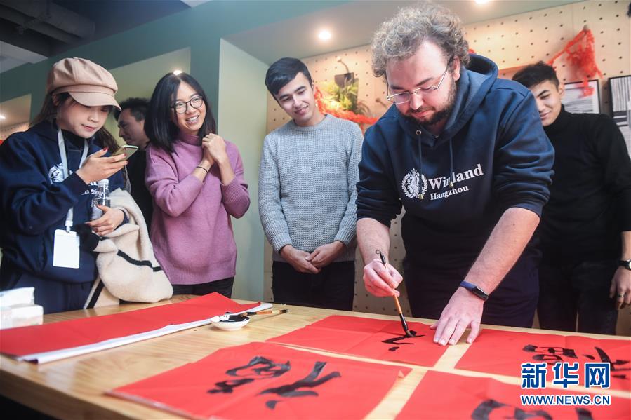 當(dāng)日,浙江省杭州市拱墅區(qū)上塘街道的瓜山新苑社區(qū)舉辦居民入住后的首個(gè)迎新年活動(dòng),社區(qū)內(nèi)的中外青年一起體驗(yàn)寫春聯(lián)、貼福字、包餃子等中國(guó)傳統(tǒng)習(xí)俗,在熱鬧喜慶的氣氛中迎接即將到來(lái)的新年。