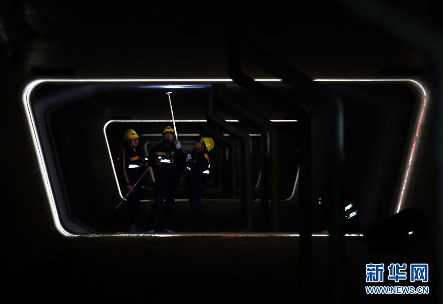 1月3日,中國鐵路濟南局臨沂工務(wù)段工程技術(shù)員在沂河特大橋箱梁內(nèi)檢查。新華社記者 朱崢攝