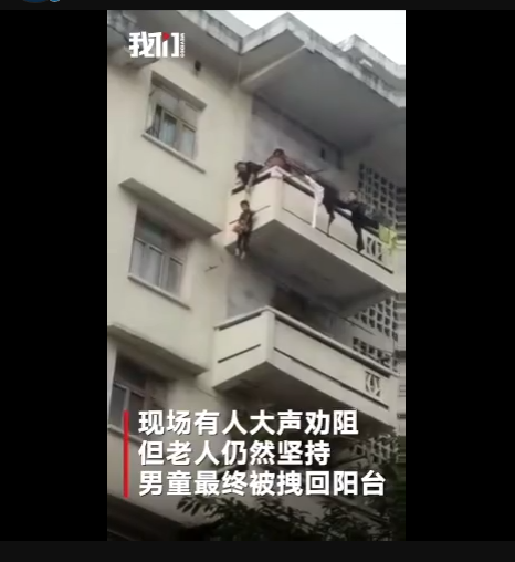 1月5日下午,四川南充市蓬安縣,一奶奶在百順街老百貨公司宿舍樓上,用一根繩子綁著孫子的腰,將其從五樓吊至三樓一窗戶遮雨臺上,只為救一只貓。此舉嚇得周圍鄰居紛紛呼喊:危險!網(wǎng)友:小孩子不懂事,老人是糊涂了嗎?到底誰是親的?